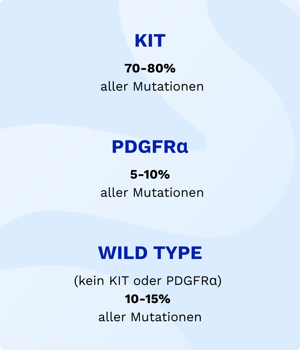 Bei Menschen mit GIST kommen die folgenden primären Genmutationen am häufigsten vor: